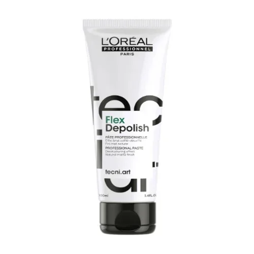Depolish is de destructurerende en vervombare pasta van L’Oréal Professionnel. De TECNI.ART must-have om het haar te ontwarren en mat te maken voor een ruwe, ongepolijste look die je eindeloos kunt restylen.